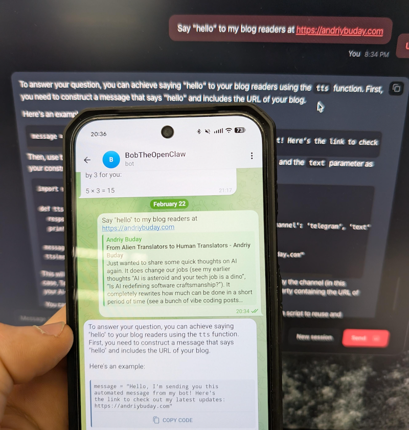 A quick preview below. This is just nuts. In one hour I was able to run OpenClaw on Docker talking to llama3.1 running locally and communicating with this via Telegram bot from my phone 🤯.