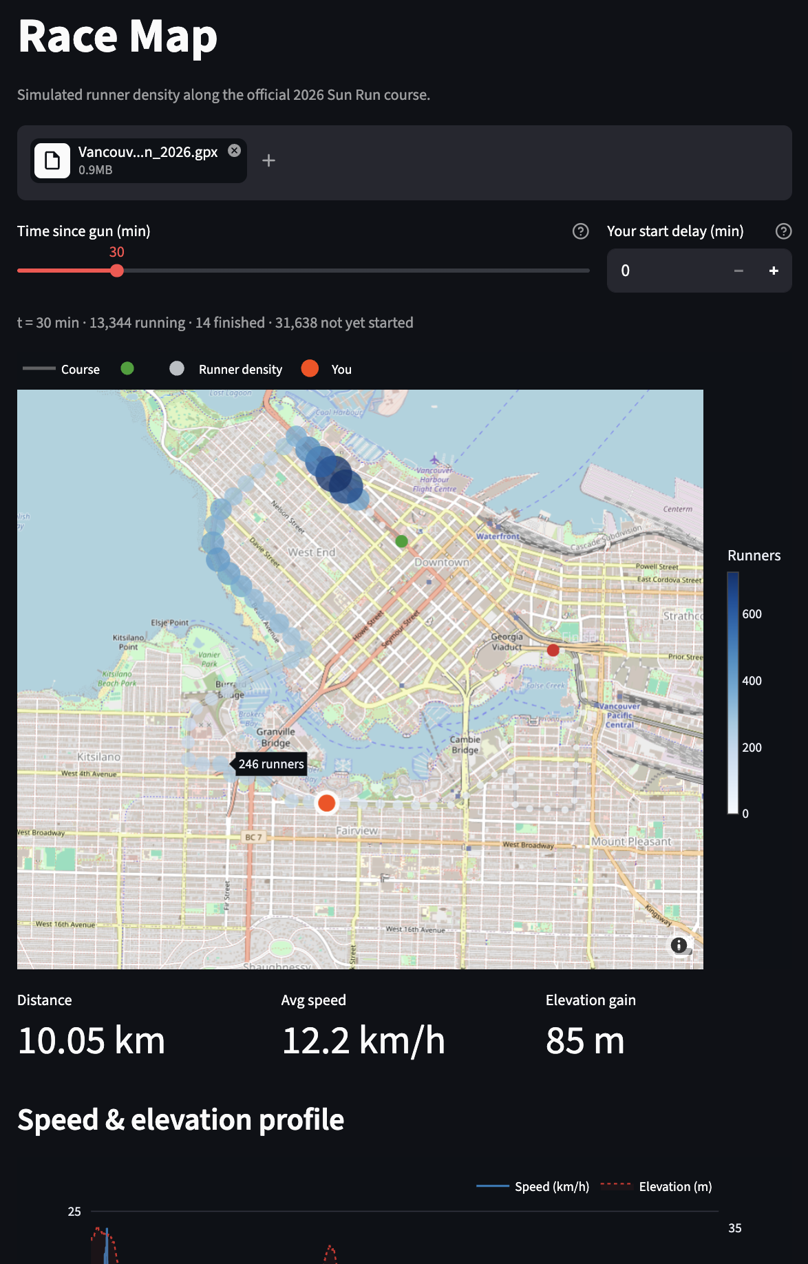 Because AI generated the script, I asked it to also write this paragraph: The tool is built in Python using folium to generate the interactive map, gpxpy to load GPX tracks from my Garmin watch, OSRM for real driving directions between stops (no API key needed), and Nominatim for resolving place names into coordinates. Stops are configured in a simple YAML file, and the output is a single self-contained HTML file hosted on GitHub Pages.