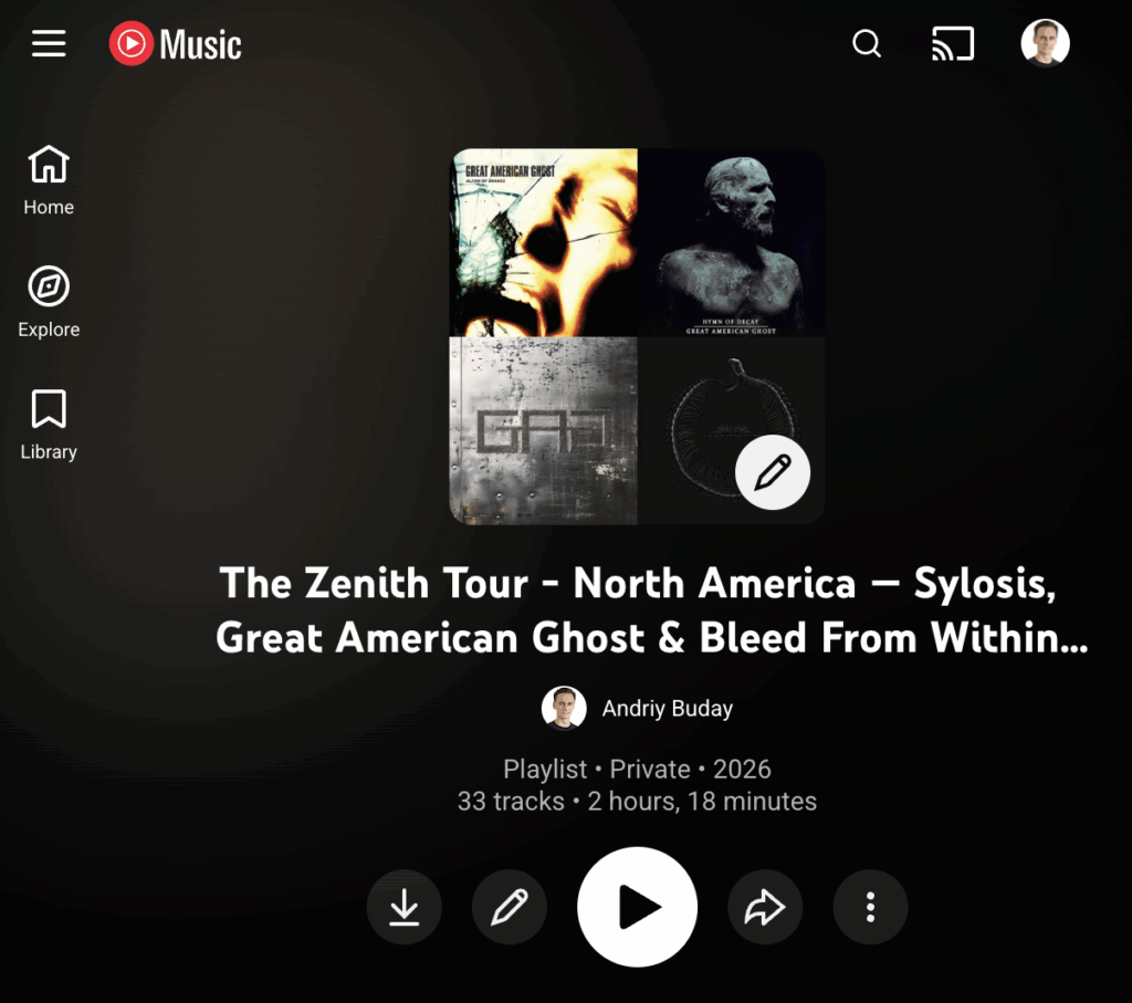 Something you might not know about me is that I go to Metal concerts. I just built a tool I will actually use. One of the typical things that I do before going to a concert is that I look for a setlist of the tour so I can get more familiar with the support bands and with the songs that are going to play. The problem I have is that usually there are no ready made setlists or they are not the songs the bands actually are playing, this sucks, so I built a tool for myself, and you if you are using YouTube music: