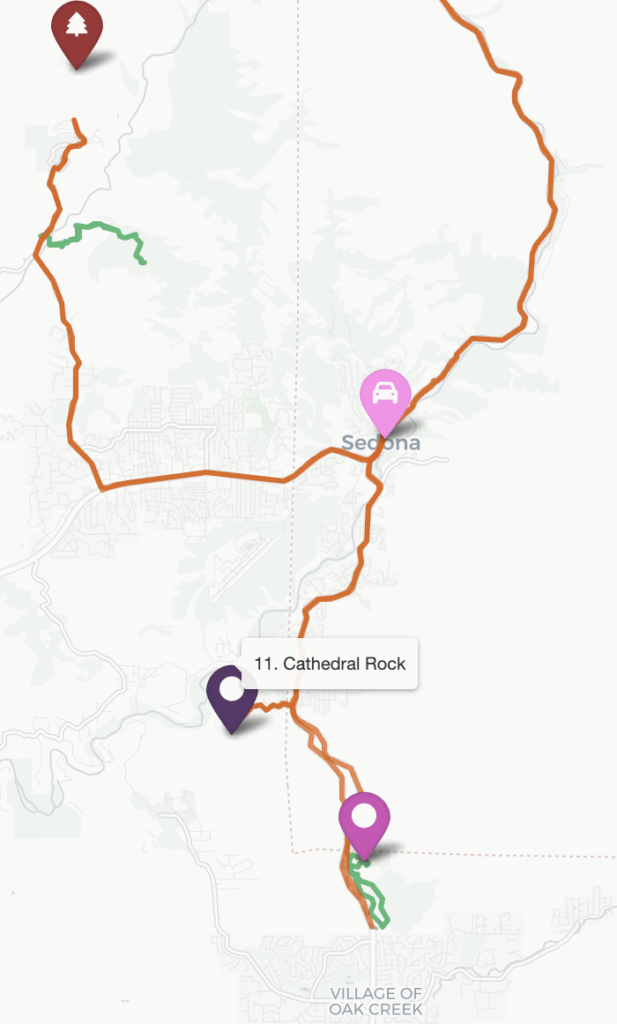 I think it is really nice to get this customized map that connects both driving directions and hikes that I’ve done. I didn’t put everything on the map from my trip (like hotels or restaurants where I ate) but that could easily be done, so then you have really nice comprehensive map just for yourself with all of the actual places you visited.