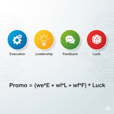 Promo = (Execution + Leadership + Feedback) * Luck