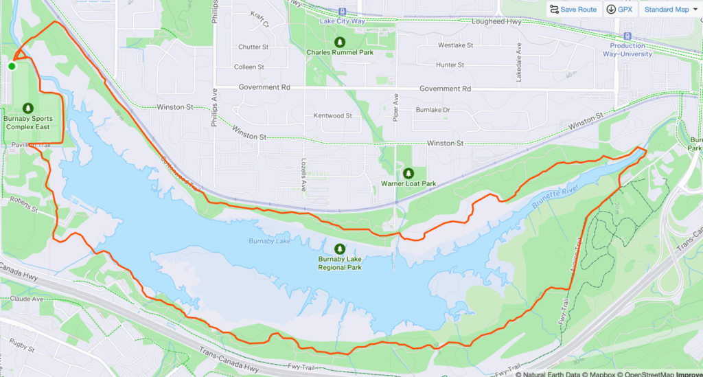 The context is that I used to go on 10k runs with friends around Burnaby Lake in British Columbia. I no longer live there but my memory of good weekly Sunday runs remains.